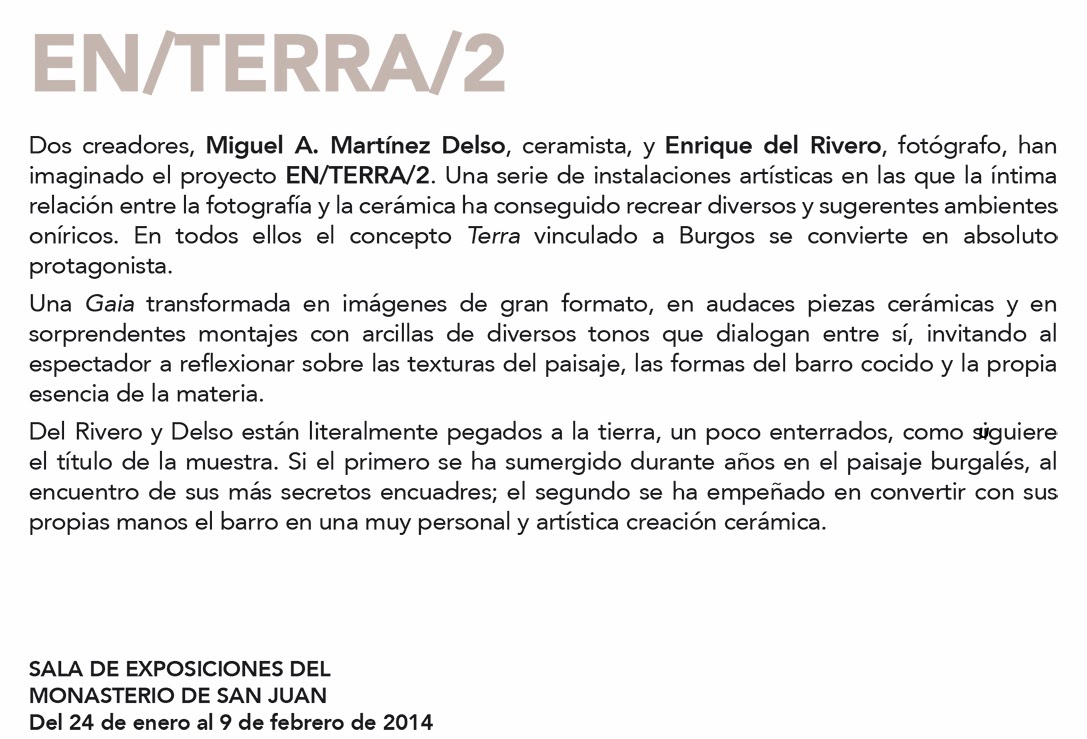 26 Ene EN/TERRA/2 Exposición de Enrique del Rivero y Miguel Martinez Delso, en el Monasterio de San Juan . Burgos Posted at 20:42h in Sin categoría by delso